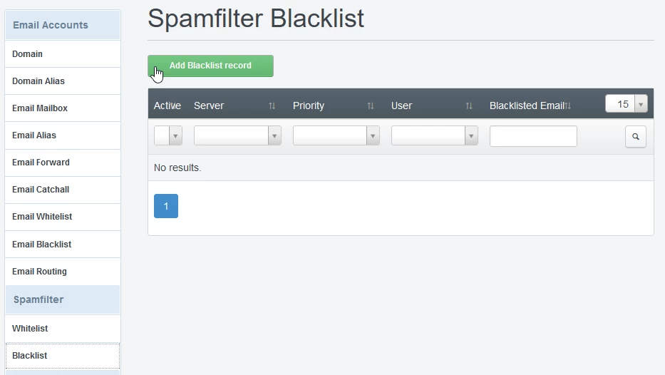 - Then, from the left menu, we go to the Spamfilter category and select "Blacklist"