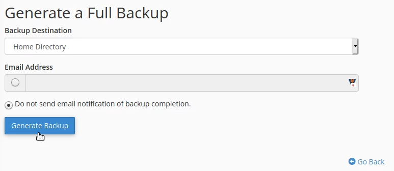 • This option will create an archive with all the files and settings of the account to be saved, but from the cPanel interface, this archive cannot be used for a complete restoration of a site. For a full restoration, you will need to contact us via email at: help@hostico.com