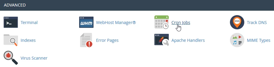 - Once logged into the cPanel administration panel, look for the Advanced section in the displayed window and select Cron jobs from there