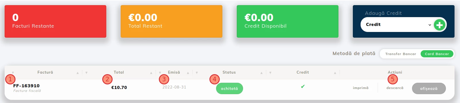 - (3) Issuance date - represents the date on which the proforma was issued by the system (to note - proformas are automatically issued by the system 2 weeks before the due date) for the service that is to be renewed (for hosting) and renewed (for domain);