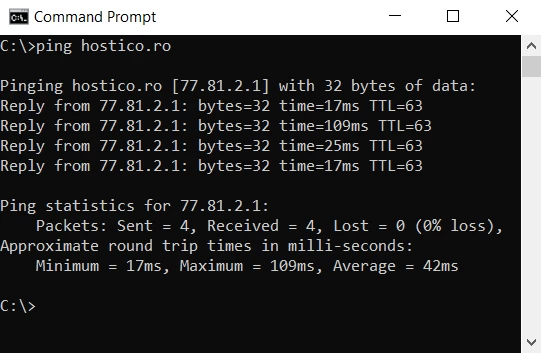 In our example, we can see that the IP associated with the domain hostico.ro is 77.81.2.1.